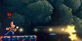 To damage the flask you shoot magical bullets. To protect your own, you strike those bullets to deflect them back. It’s simple, but it doesn’t stop there! Scattered around the stage are several mana potion pick-ups you can use to recharge your mana, and you can spend your mana to cast all kind of powerful spells!